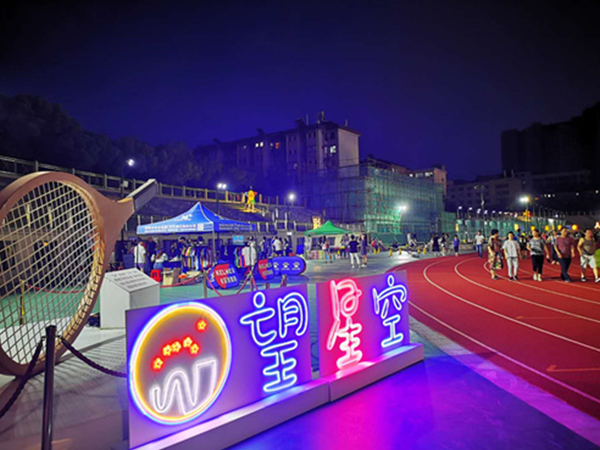 當天色漸暗,夏日的酷暑消退,省體彩健身場內的墻壁上掛滿了小彩燈,歡快的音樂讓現場充滿了輕松的氣氛。在環鄱小騎士平衡車俱樂部的攤位前,色彩靚麗的平衡車、帥氣的頭盔護具吸引了許多家長和孩子的關注,負責人還拿出一輛平衡車讓小朋友們現場體驗了一圈,在孩子們的歡聲笑語中有兩位家長現場就購買了一個學期的培訓課程,這讓負責人施一亭很高興。“受疫情影響我們最近才開始復課,就希望有這種人流量豐富的活動,恰好運動集市讓我們有更多的機會可以接觸到孩子和家長們”。望星空運動集市作為江西省首家體育類運動集市,今后將持續在省體彩健身場舉辦,努力將體育企業、體育產業的特點展示出來,為體育復工復產、抗擊疫情工作作出貢獻。